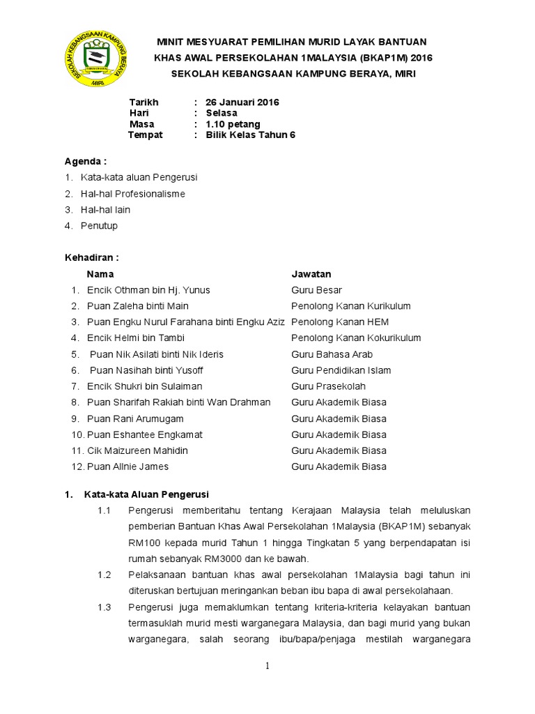 Minit Mesyuarat Pemilihan Murid Layak Bantuan Pdf
